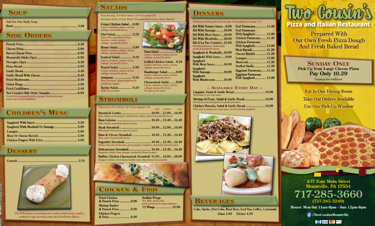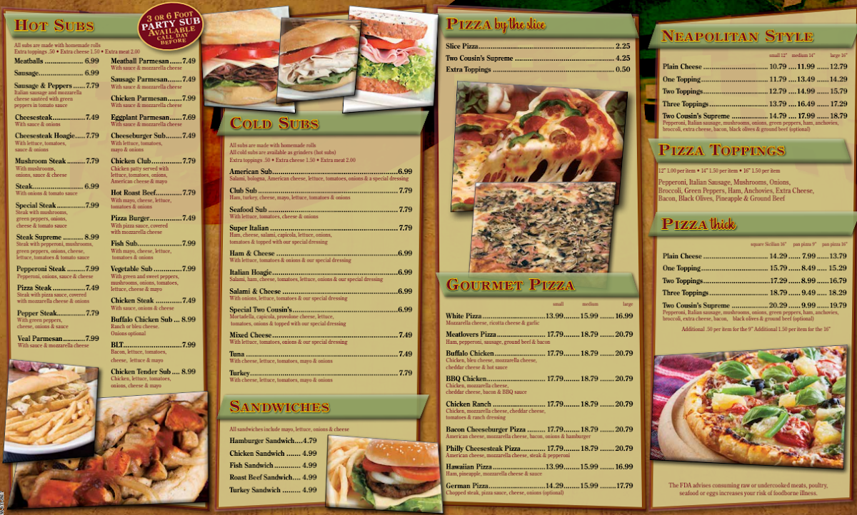 Two Cousins Pizza Menu